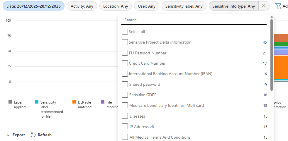 By default, the DSPM report aggregates all available sensitive information types detected across your environment.