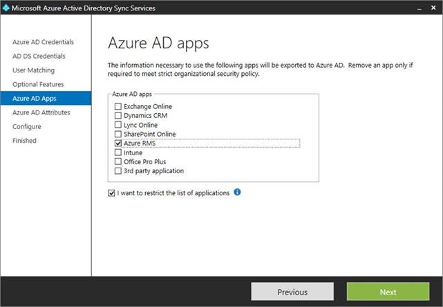 Tidigare har man använt sig av verktyget DIRSYNC för att synkronisera AD objekt till Azure AD. Nackdelen med DirSync är att det saknats möjlighet att skräddarsy vilka AD-attribut som skall synkroniserats till Azure AD. Sedan några månader tillbaka har vi ett nytt verktyg vid namn Azure AD Sync. Via detta verktyg får vi möjlighet att välja vilka/vilken Azure-tjänst som vi tänkt använda, vilket ger oss en lista på rekommenderade attribut. Vi har även möjlighet att modifiera dessa vid behov.