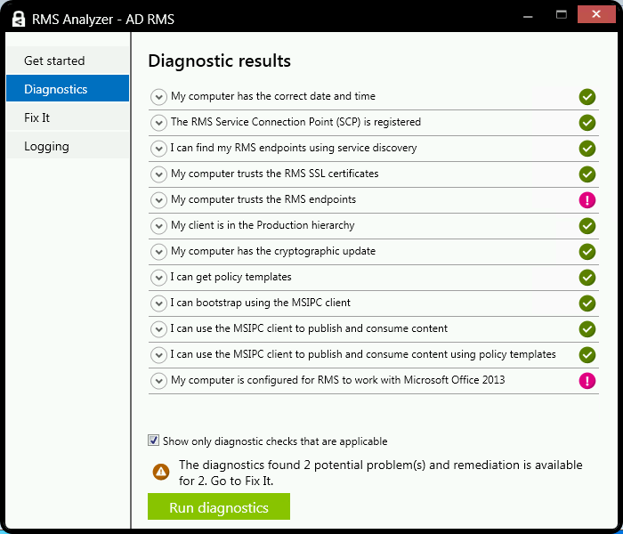 Jag hade häromdagen en utmaning där jag skulle återuppliva en gammal labbmiljö baserat Windows Server 2008 R2 plattformen med AD RMS. En miljö som varit avstängd under en längre tid och hade därmed en hel del fel. För att snabba på felsökningen använde jag ett relativt nytt verktyg som analyserar både Azure RMS och AD RMS både som slutanvändare och administratör, RMS Analyzer!