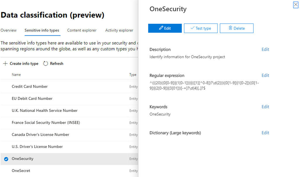 Sensitive info types