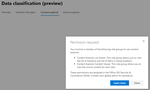 ”Content Explorer List Viewer” Den här rättigheten ger en insikt i vilka dokument/tjänster som innehåller dessa informationstyper/klasser.