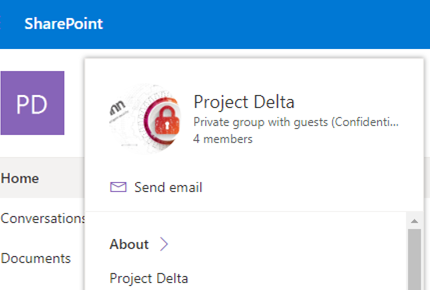 This group also gives access to the same SharePoint site that is used for this Project Delta Team.