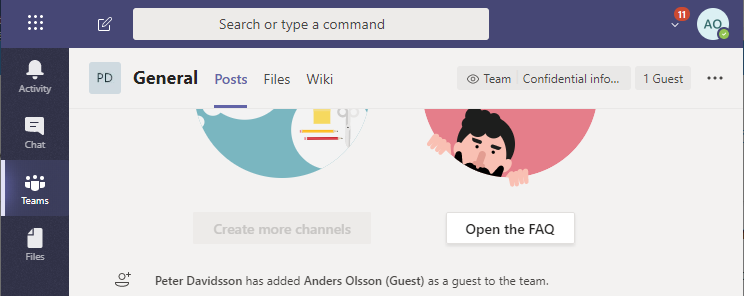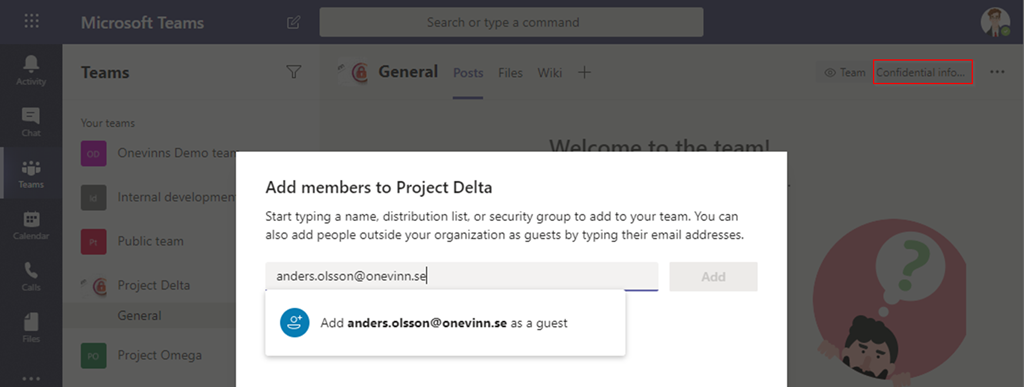 Based on the site classification he can create a Teams site that allows invites of external guests. Hi can also make sure that information for the Delta project is limited only for the project members that also include his invited guest. By classifying information as Confidential Peter can choose if information should be available for Project Delta.