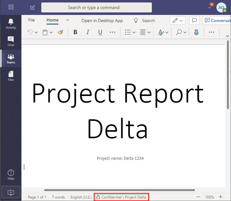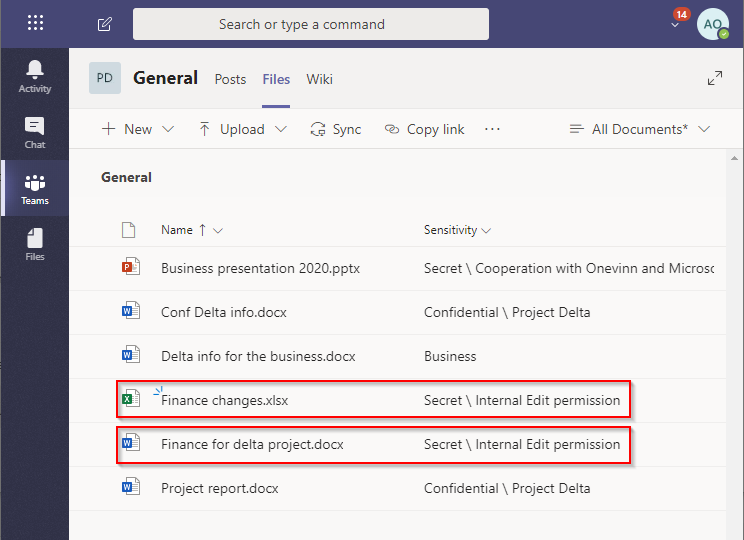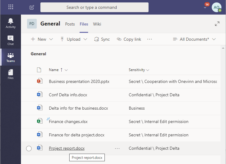 When we look at all stored information on this Teams site the user can easily see how each of these files are classified.