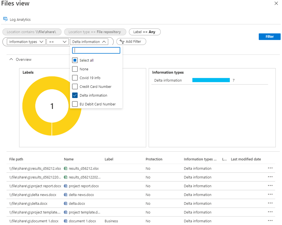 The scanner uses the same sensitivity info types and gives a view of all local files including Project Delta information.