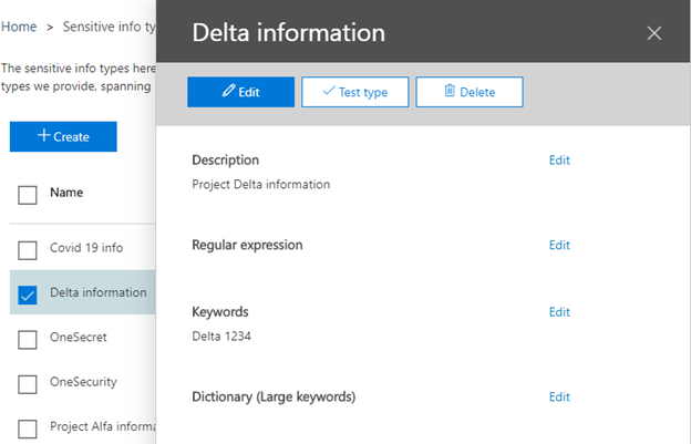 Other solutions to identify Project Delta information based on this sensitivity info type