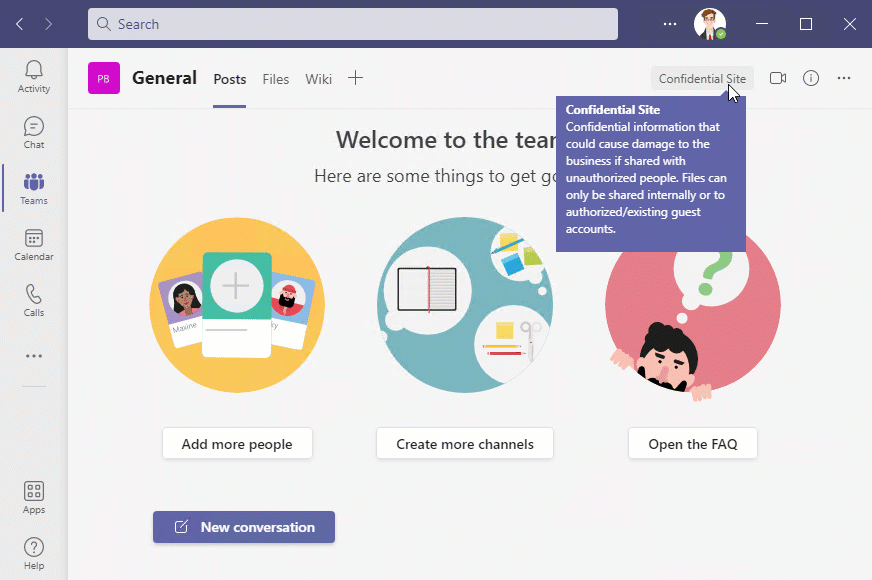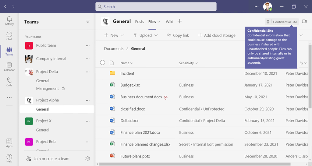 However, a common business request is the ability to classify information based on a certain location such as Team sites or SharePoint sites. Today the classification/Sensitivity label of the site only control how information can be accessed and shared and doesn’t affect the sensitivity label of the files within the team.