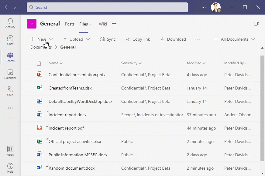 Notice that this picture has been customized to visualize that sensitivity label of the Team and the files doesn’t reflect.