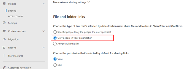 The biggest challenge is most often when we use Teams or restricted channels in Teams to restrict access to certain information. Even if we set a Team or a Teams channel as private, the default setting for sharing is that files can be shared to anyone within your organization.