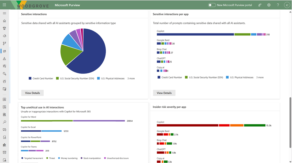 When it comes to gaining insight into risky usage, such as sensitive information within generative AI, Microsoft recently launched AI Hub as a feature within Microsoft Purview.