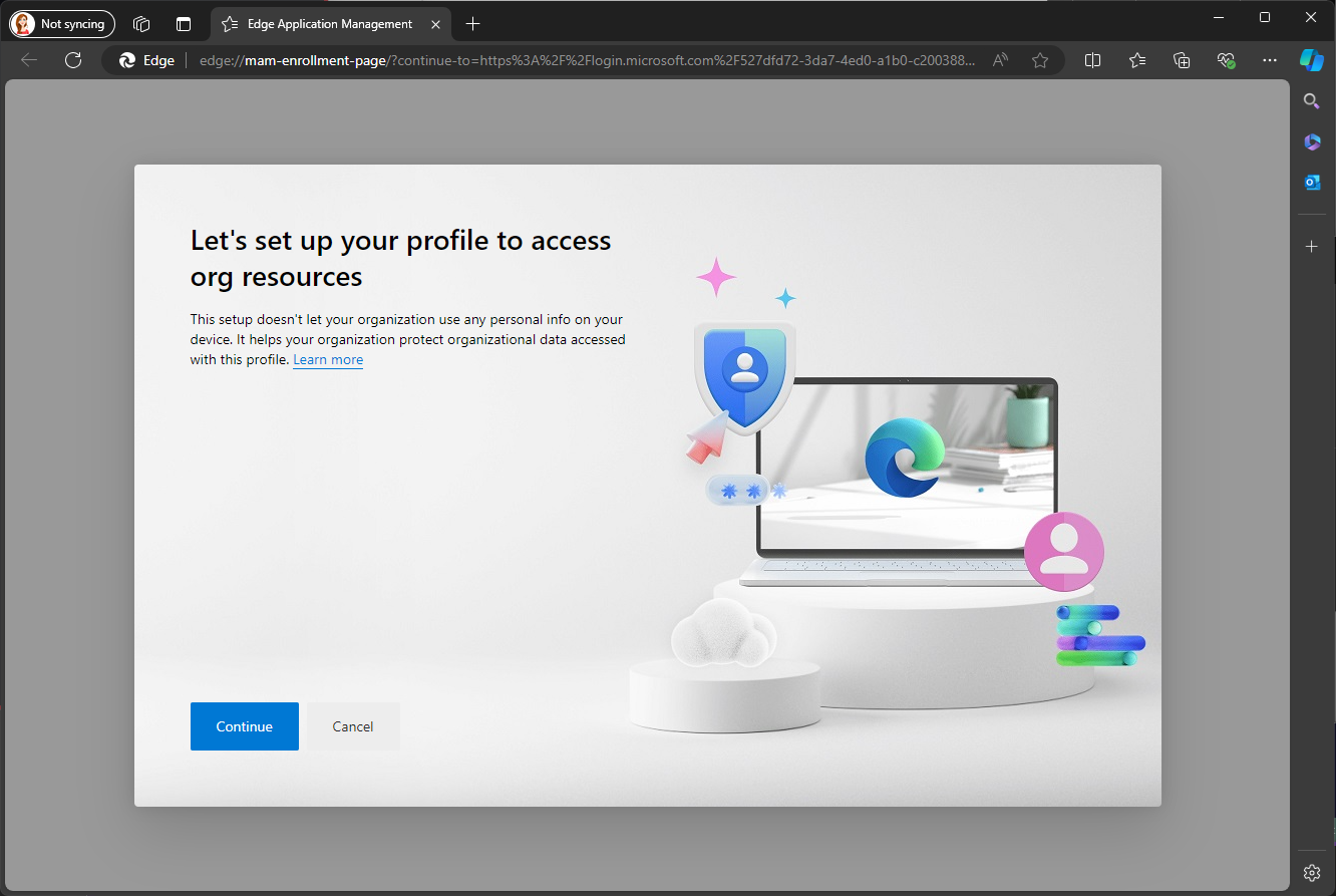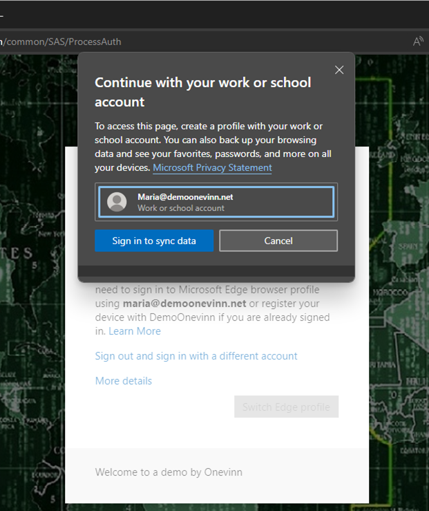 Om Edge redan används, uppmanas användaren att skapa en ny profil och logga in med samma konto.![]()