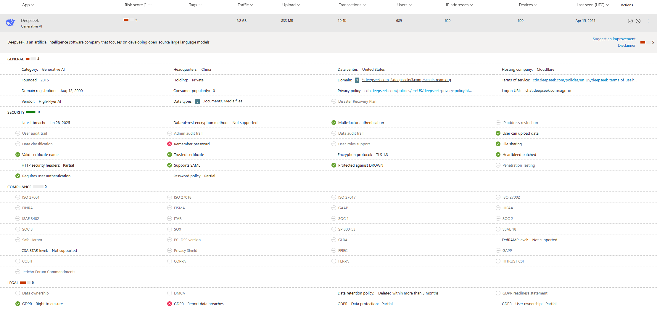 Till exempel kan vi enkelt se hur många som använder Deepseek, läsa mer om tjänsten – och vid behov begränsa eller blockera den.![]()
