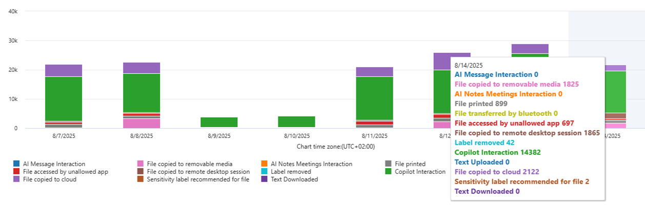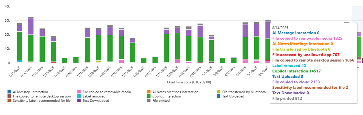 Detta är ett problem, för utan uppföljning riskerar skyddet att vara mer av en pappersprodukt än ett aktivt säkerhetsverktyg. Här blir trendanalys avgörande – både för att förstå hur information används i praktiken, men också för att upptäcka om organisationen riskerar att bryta mot sina egna riktlinjer eller mot regelverk som GDPR.