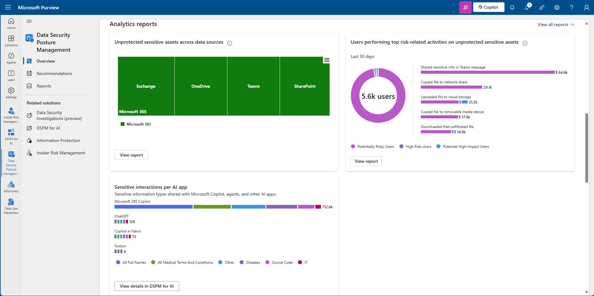 Microsoft Purview Data Security Posture Management (DSPM) is built for exactly that purpose. It gives you a security lens over your data estate so you can answer: